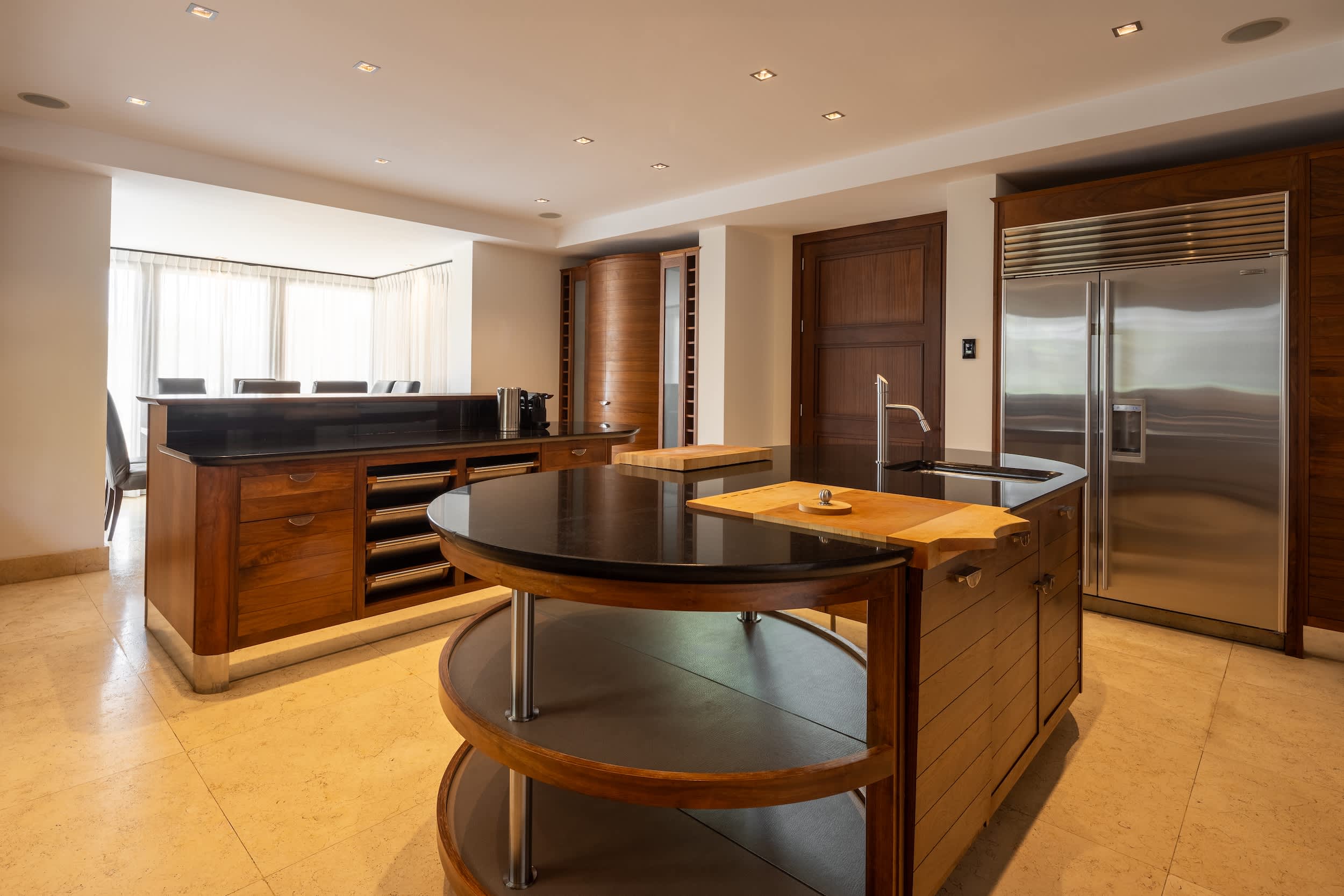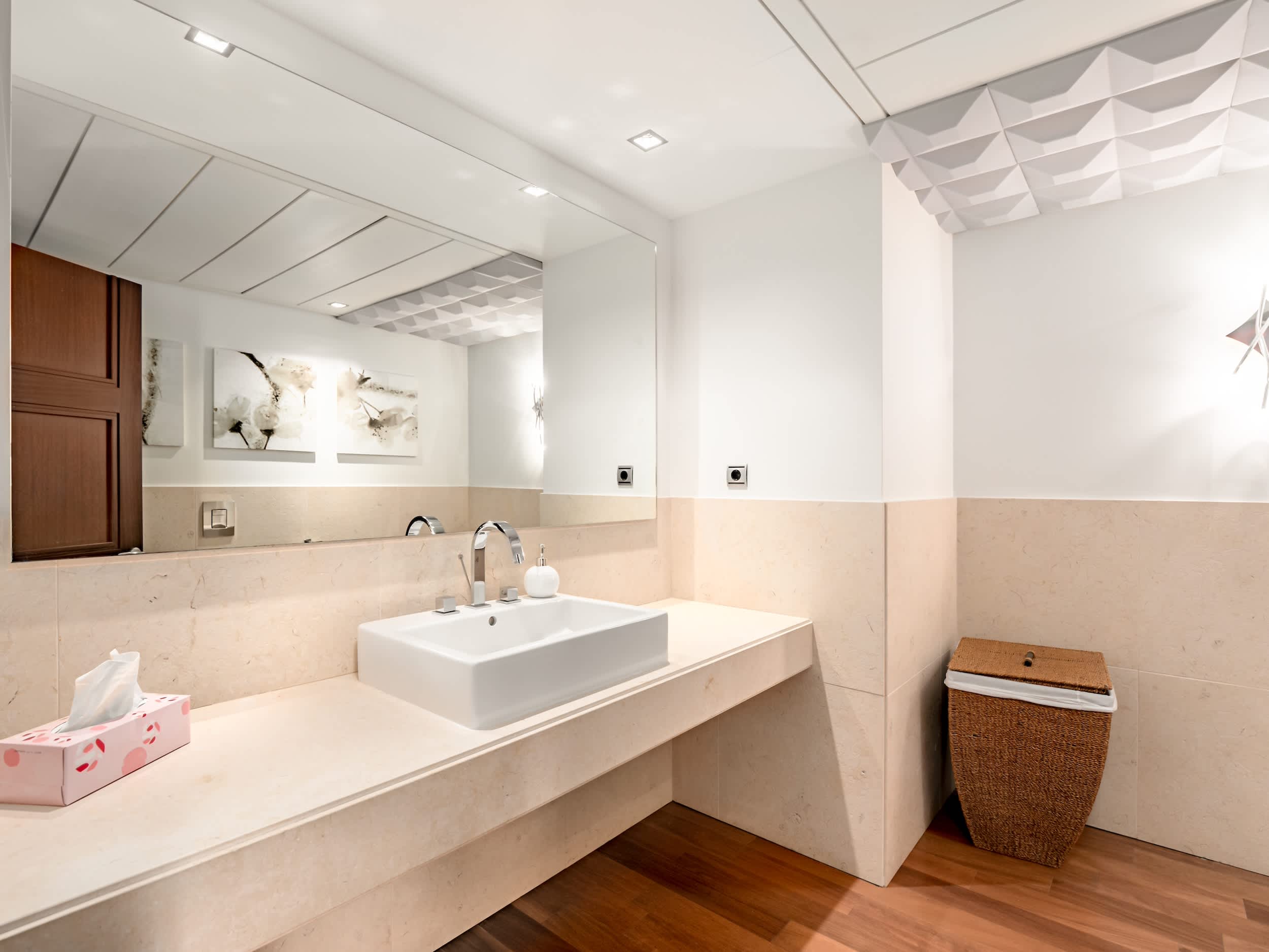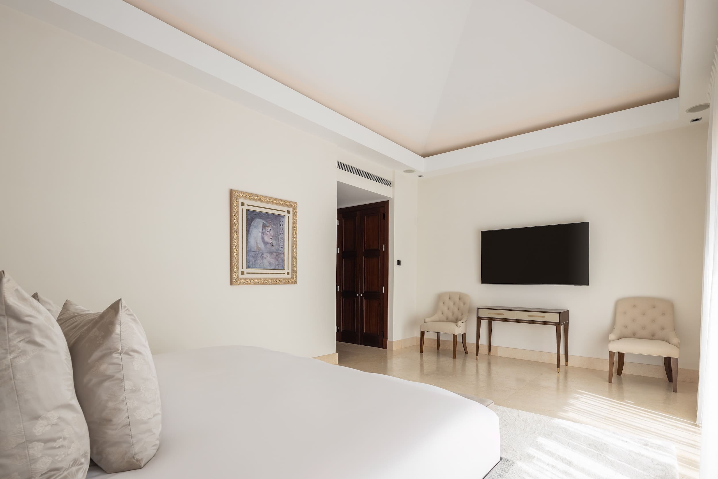 Welcome to this magnificent villa, where luxury greets you from the very entrance with grand marble fountains flanking each side, setting an impressive tone. Inside, the villa boasts five luxurious one bedroom suites and a fully equipped guest apartment, ensuring ample space and privacy. For entertainment, enjoy a private home cinema, a stylish bar and games room, and a fully outfitted gym.