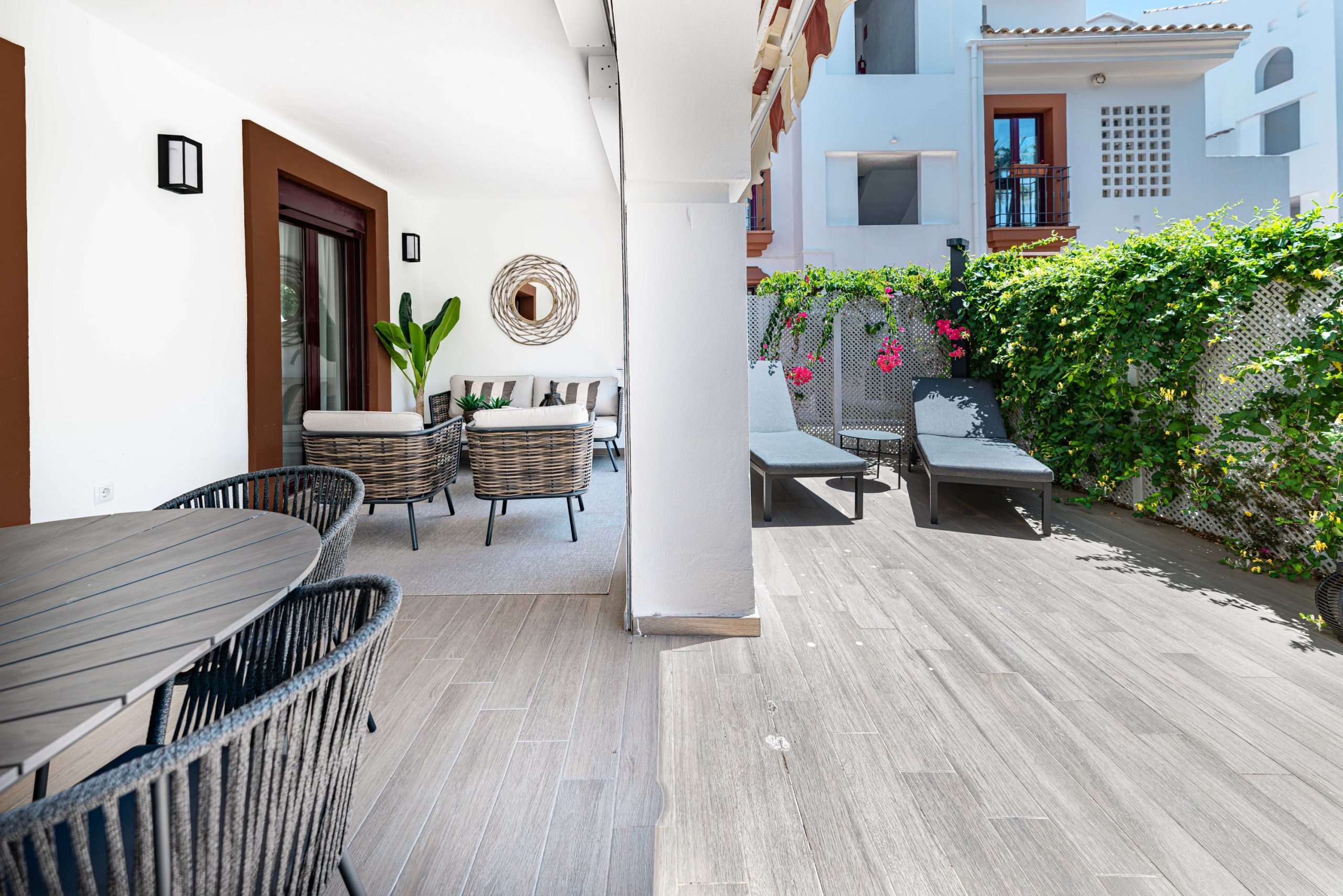 Indulge in luxury living with this meticulously designed ground floor apartment. Featuring four spacious bedrooms and three elegant bathrooms, this residence promises comfort and style. The living room flows seamlessly into a contemporary kitchen, perfect for culinary adventures. Step outside to an inviting terrace, complete with a cozy lounge, dining area, outdoor shower, and BBQ. This alluring outdoor space is perfect for relaxation and entertaining, creating the ideal escape for discerning guests.