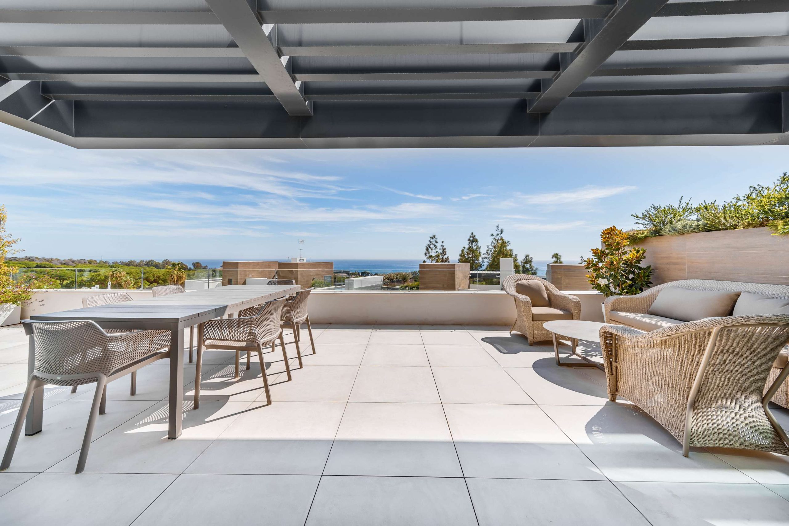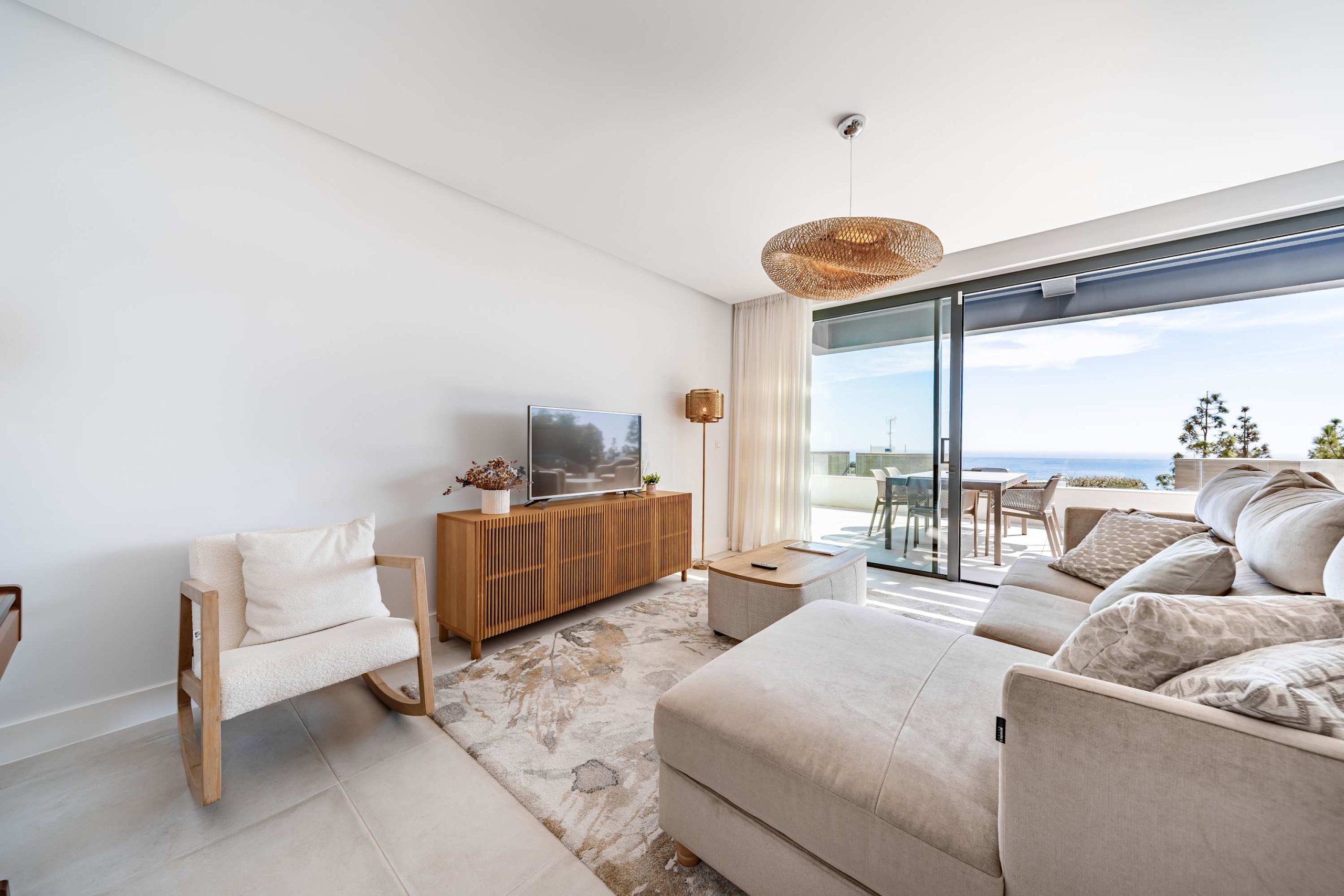 Welcome to your stylish Marbella escape, an elegant 2 bedroom, 2 bathroom residence blending indoor charm with outdoor luxury. The bright, open plan living space flows into a beautifully furnished terrace, ideal for morning coffee or evening wine. The serene master suite enjoys direct terrace access and sunrise views through expansive windows. A sleek kitchen with all modern conveniences, including a dishwasher and laundry area, makes longer stays a breeze.