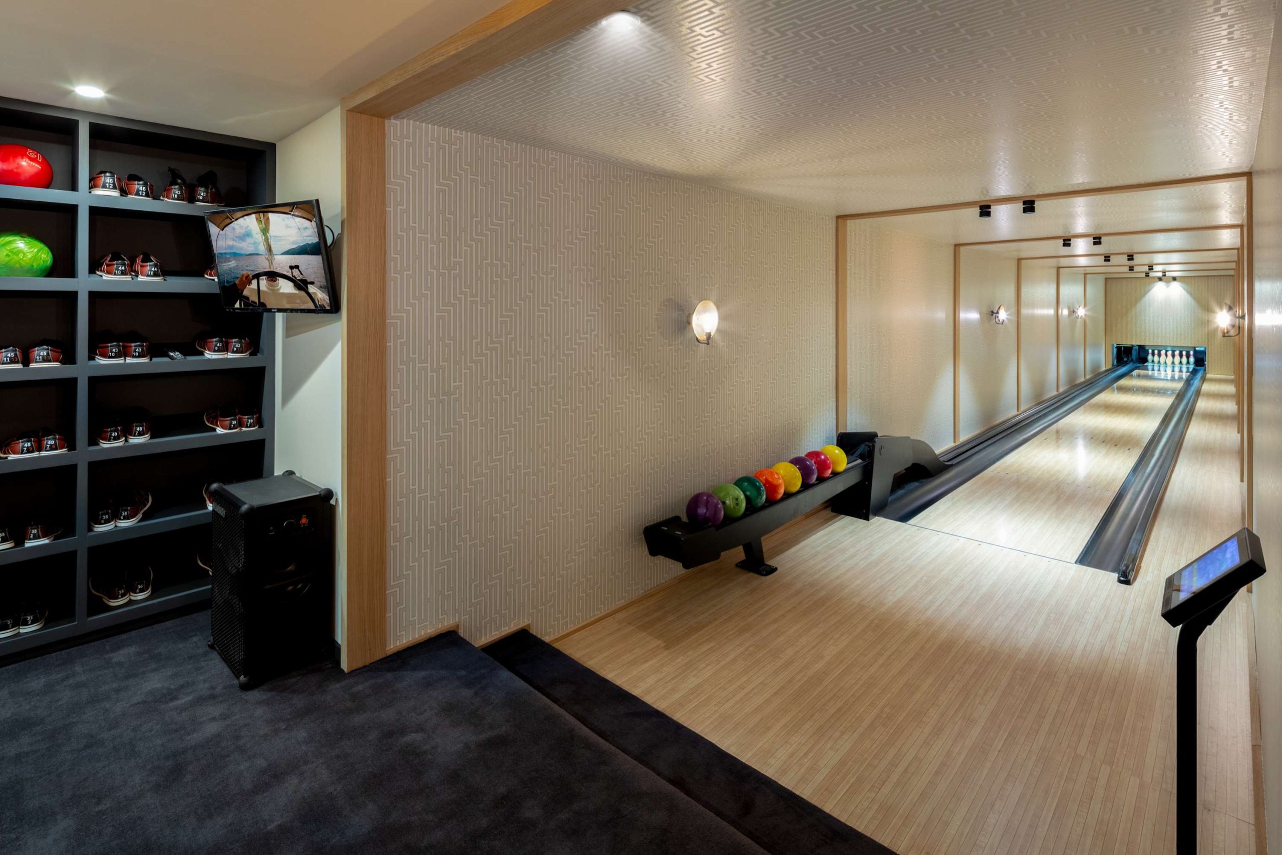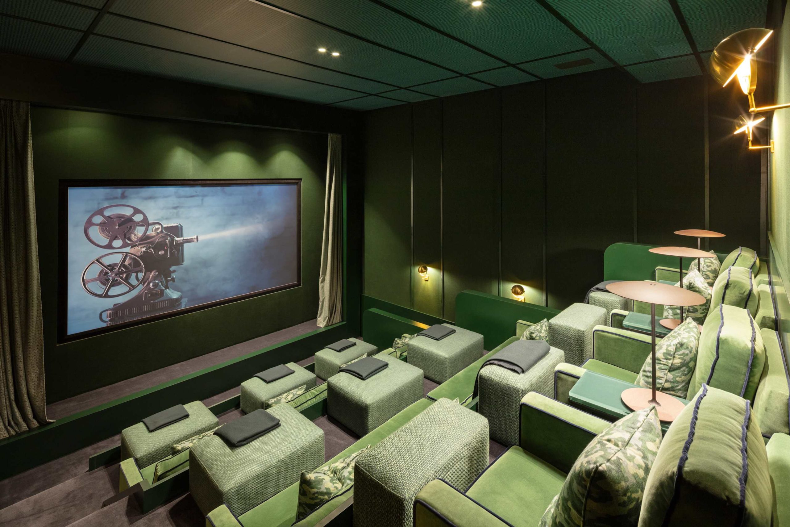 The master suite, overlooking the sea, features a green copper clawfoot tub and an outdoor jacuzzi. The lower level boasts a movie theater, custom hammam SPA, heated indoor pool, gym and gaming room.