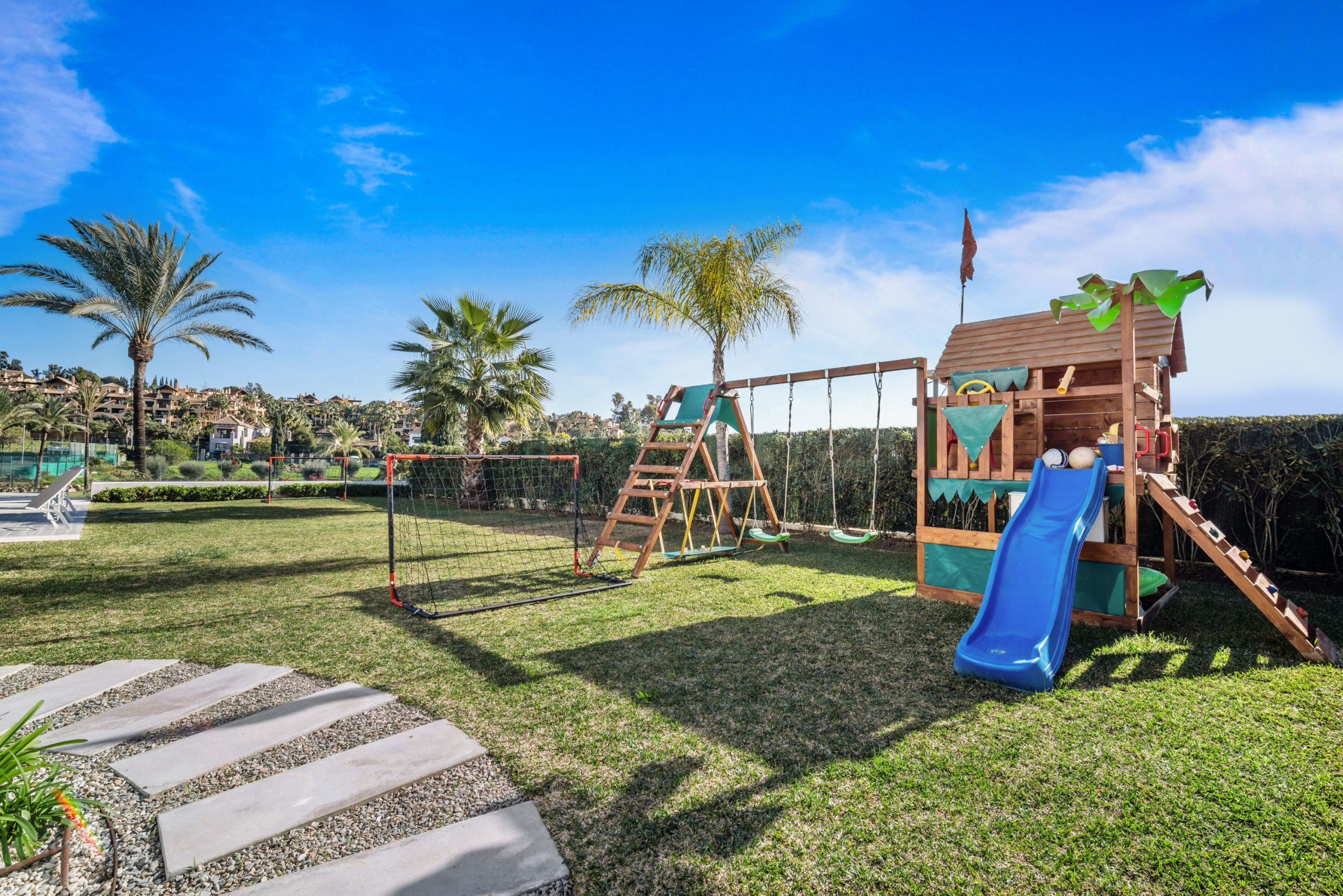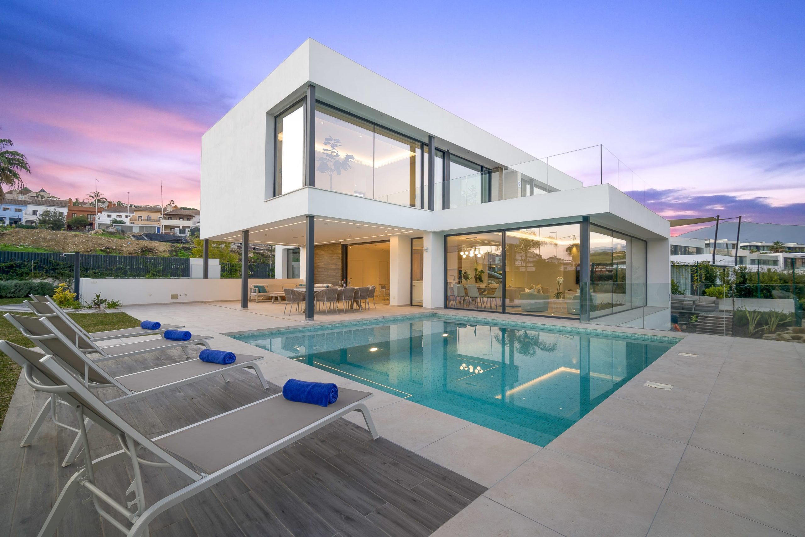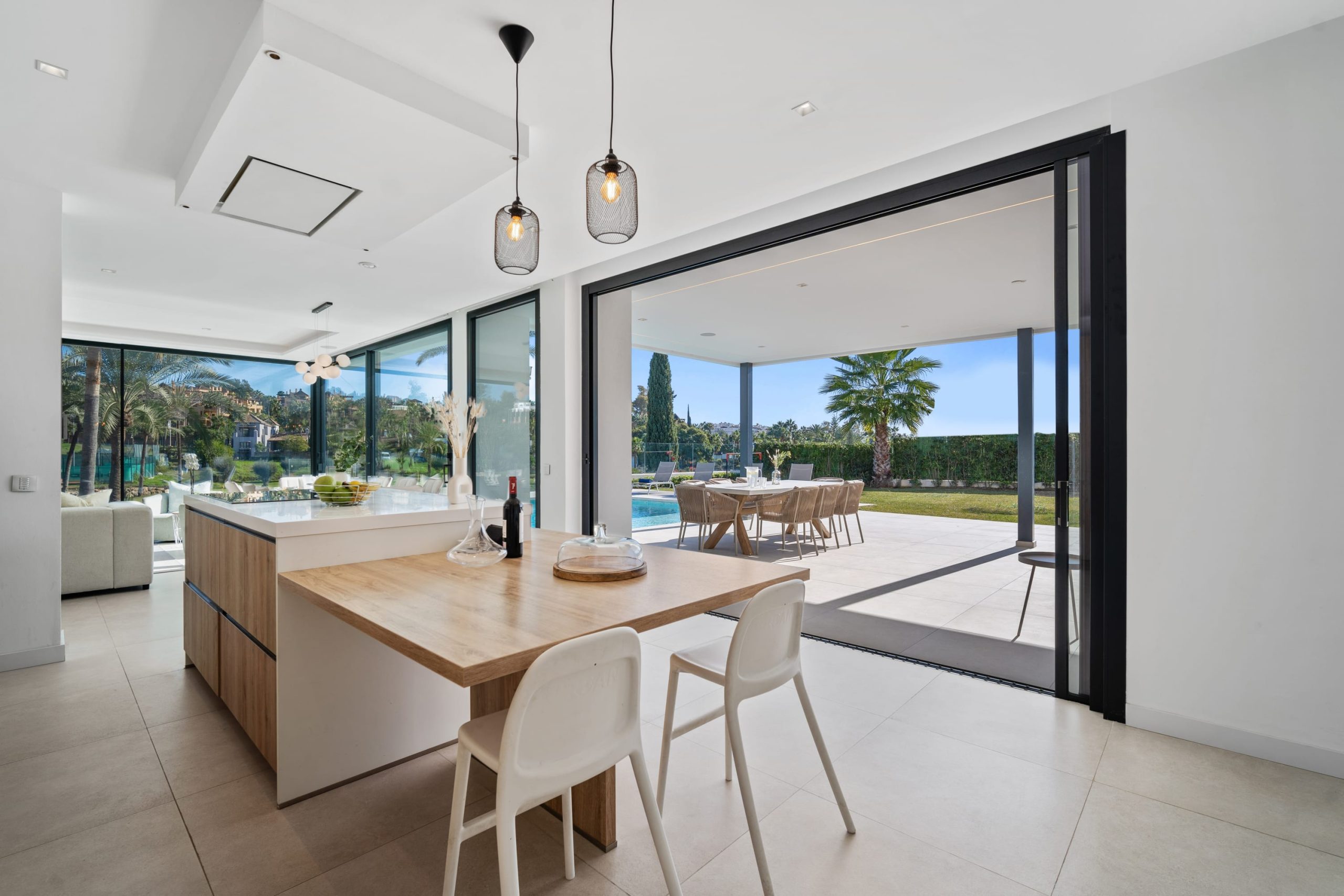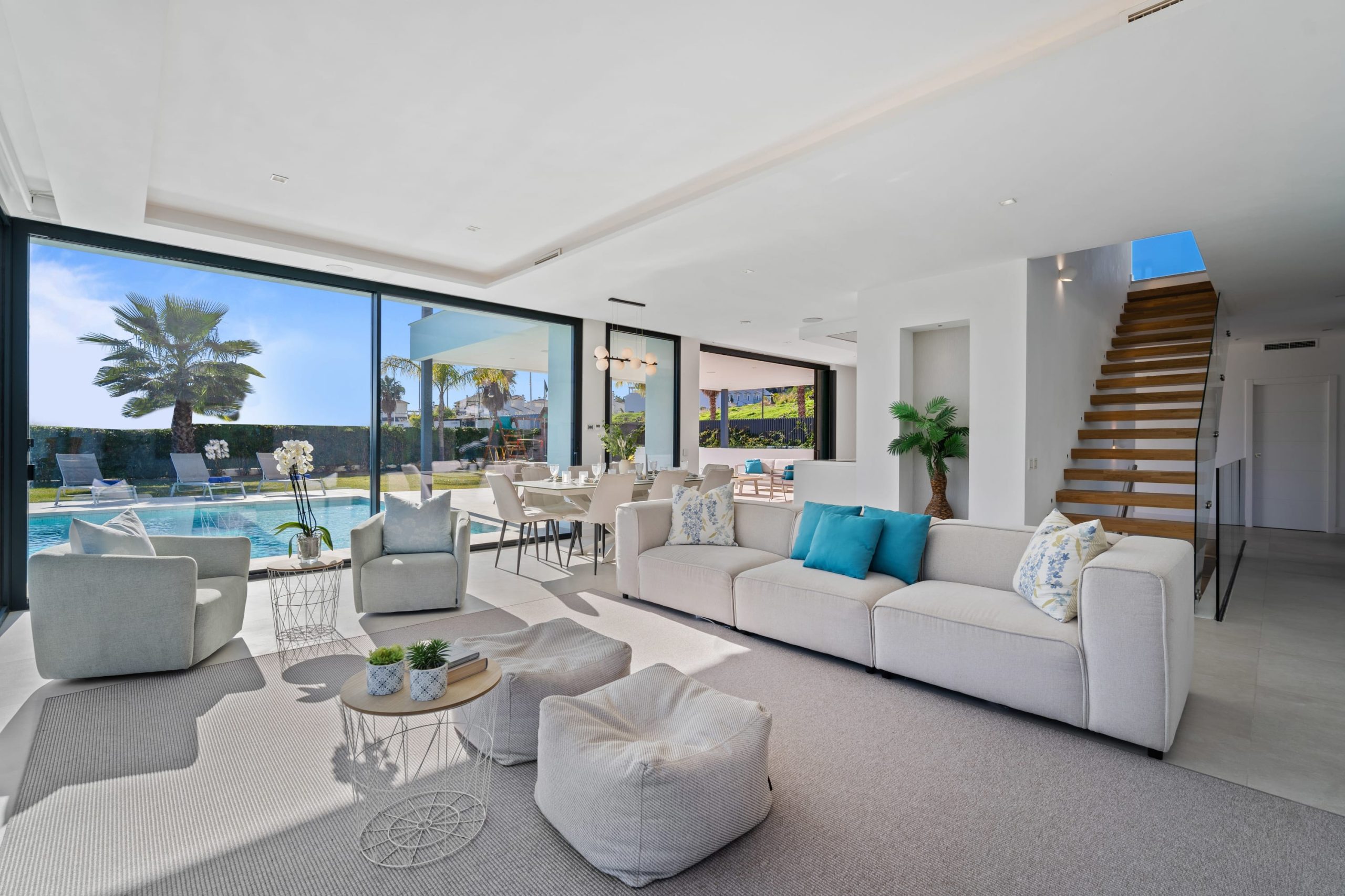 Villa Sandie is located in the tranquil setting in the heart of El Paraiso but only less than 3kms to the beach, this short-term rental is facing El Campanario Golf course and it has three other iconic golf courses: El Paraiso Golf, Atalaya Golf, and Guadalmina Golf, all within 8 minutes by car. The world famous marina of Puerto Banus is less than 10 minutes by car. The property is surrounded by the idyllic Andalusian nature and similar high-end properties.