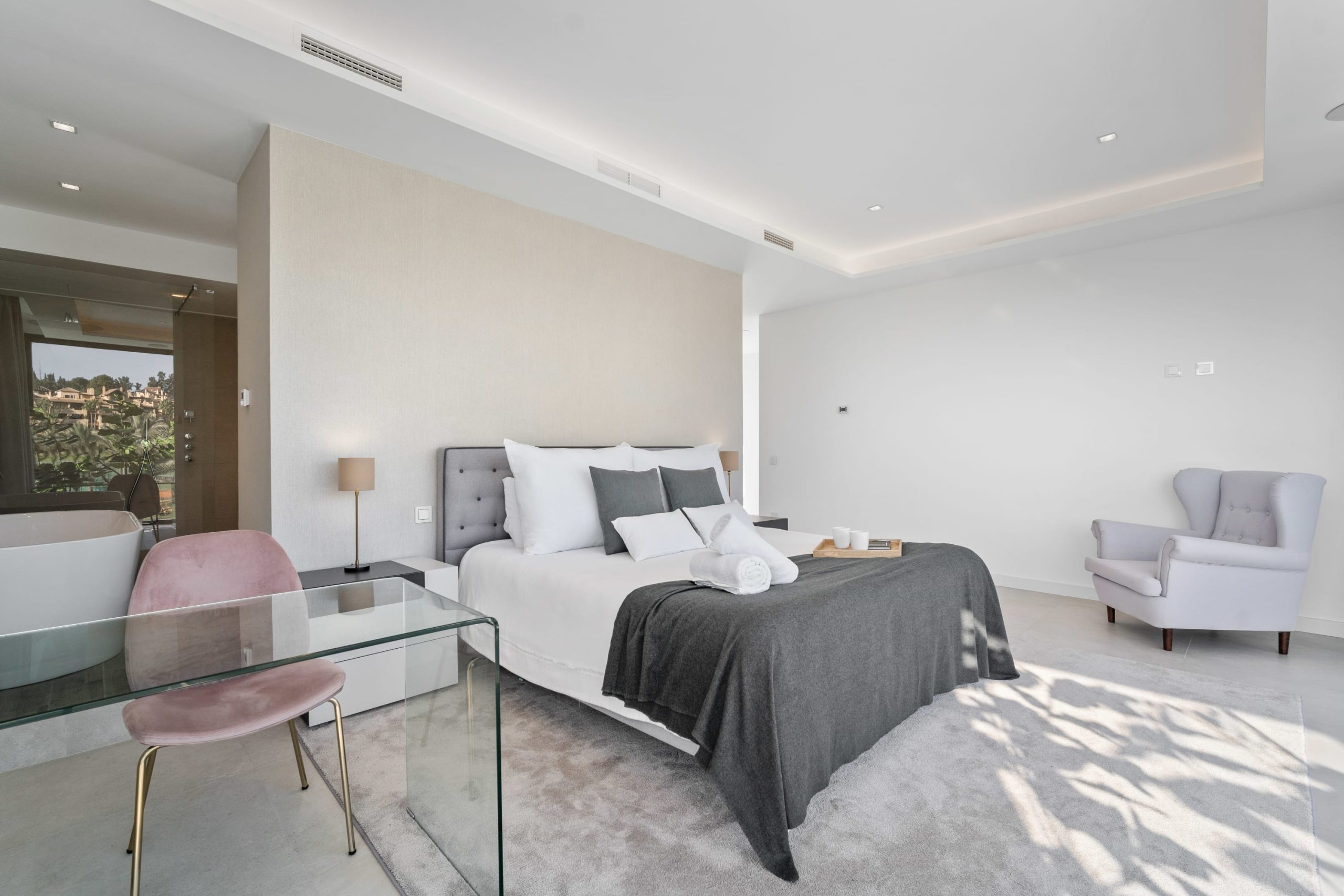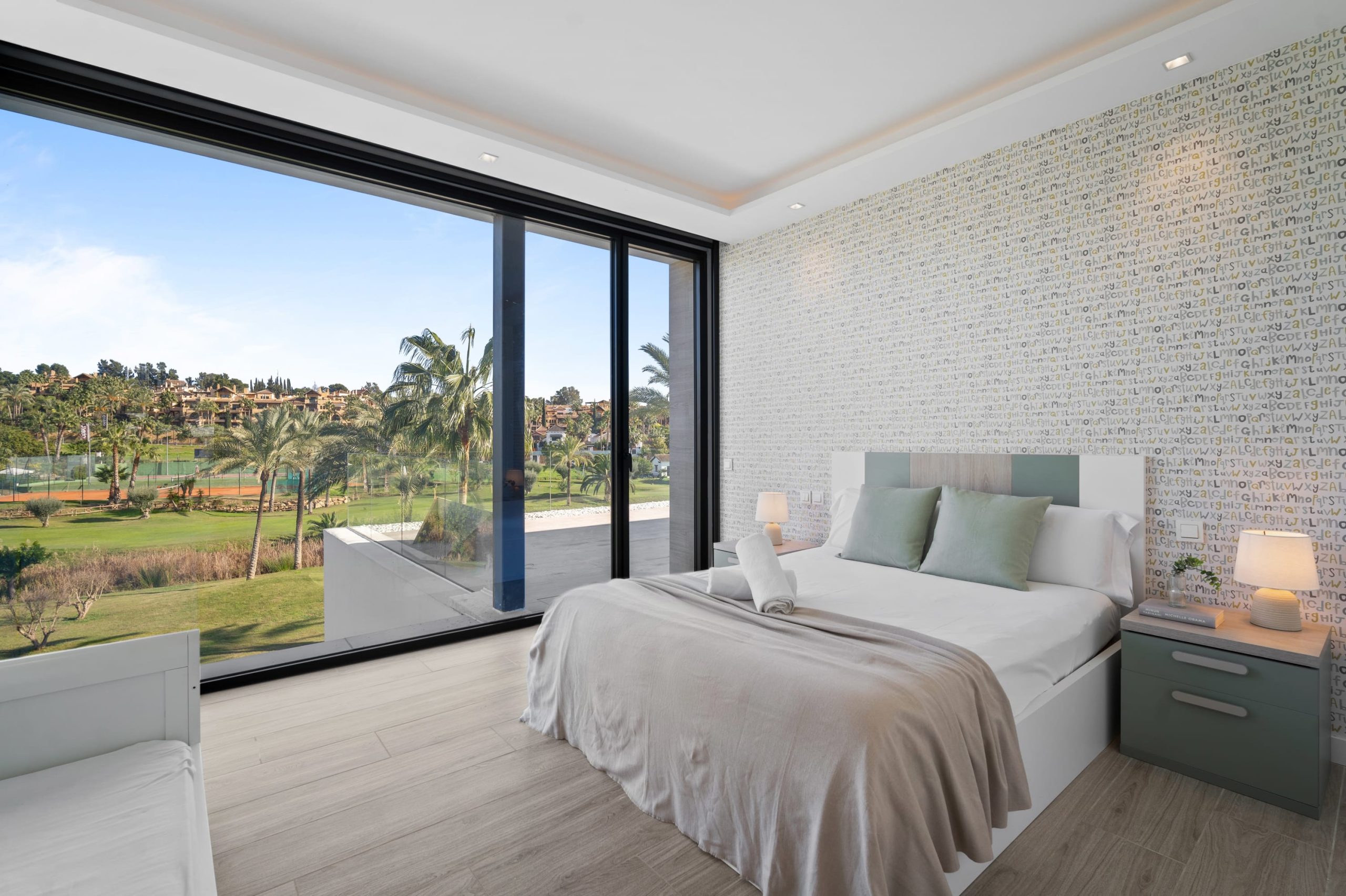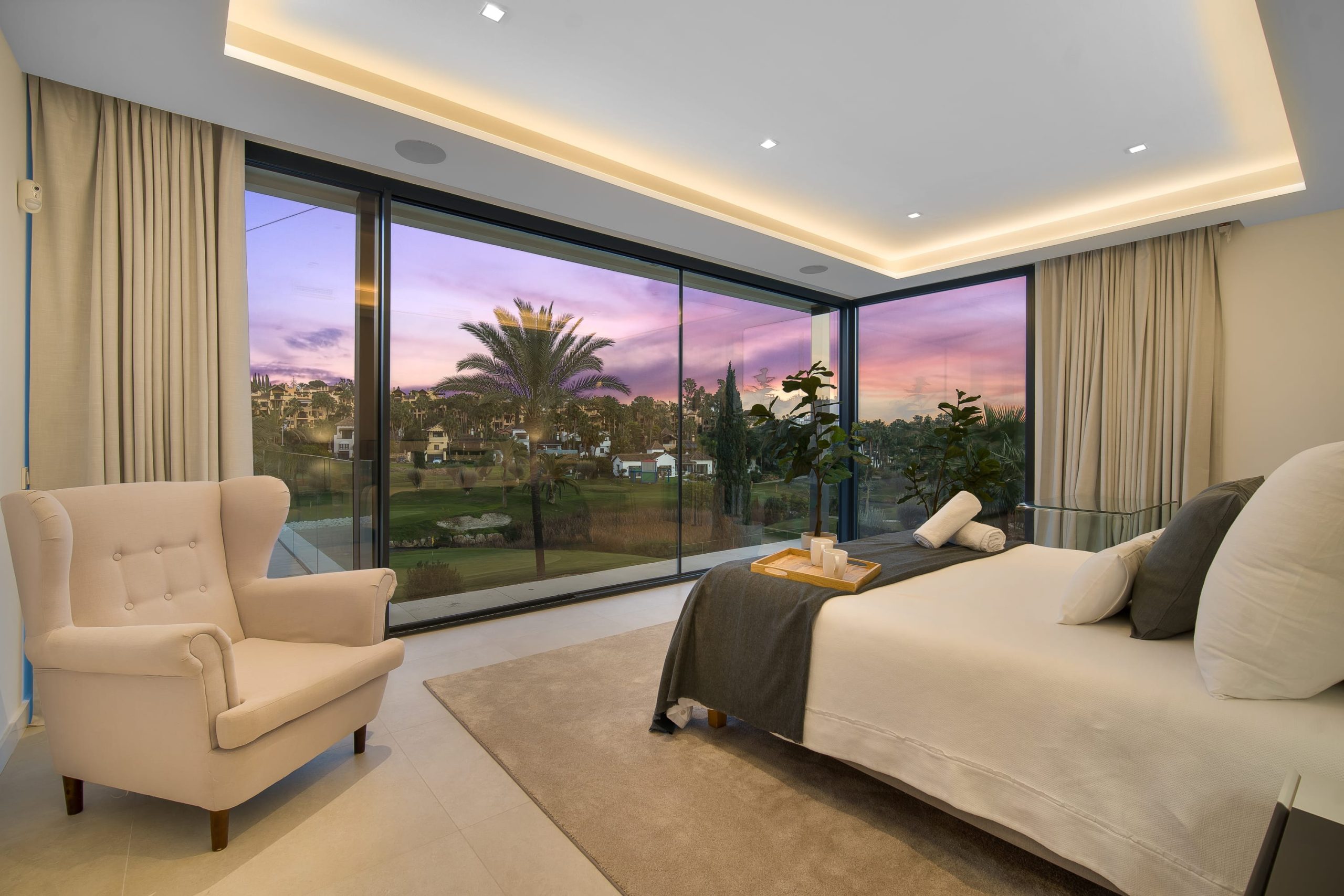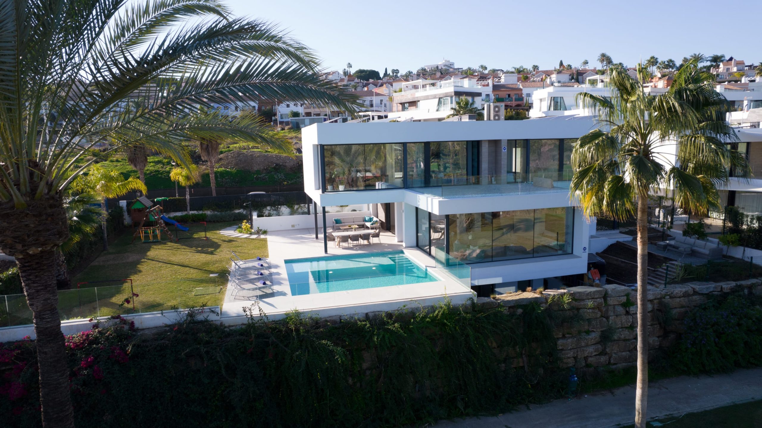 Villa Sandie is located in the tranquil setting in the heart of El Paraiso but only less than 3kms to the beach, this short-term rental is facing El Campanario Golf course and it has three other iconic golf courses: El Paraiso Golf, Atalaya Golf, and Guadalmina Golf, all within 8 minutes by car. The world famous marina of Puerto Banus is less than 10 minutes by car. The property is surrounded by the idyllic Andalusian nature and similar high-end properties.